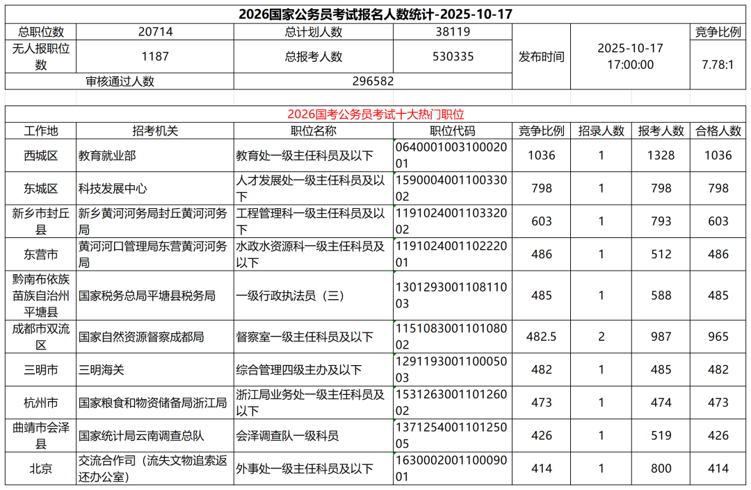 2026国考公务员考试十大热门职位: