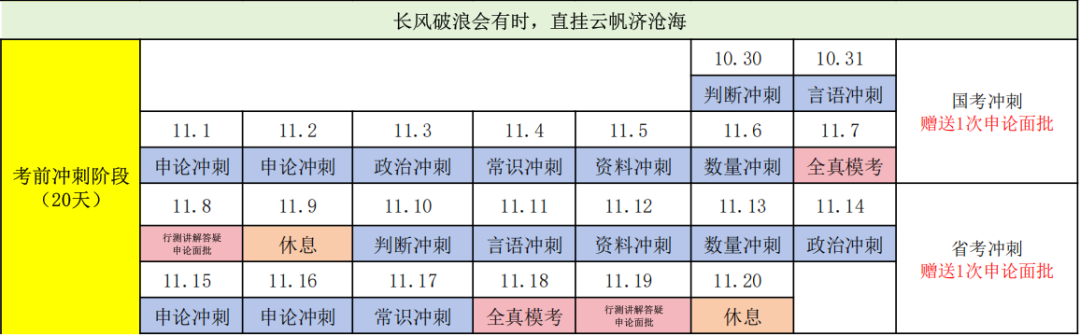 20 天 20 晚考前冲刺班(10 月 30 日 - 11 月 19 日)