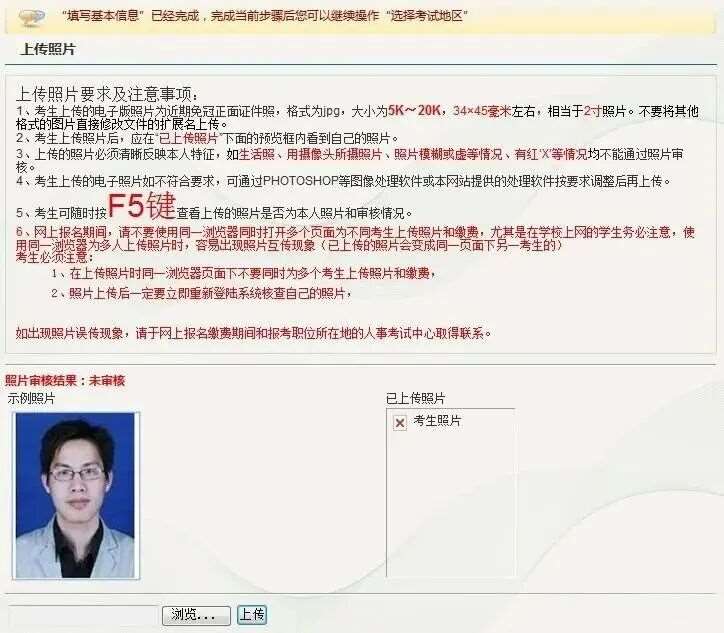 尤其是在学校上网的学生务必注意,使用同一浏览器为多人上传照片时,容易出现照片互传现象(已上传的照片会变成同一页面下另一考生的)。