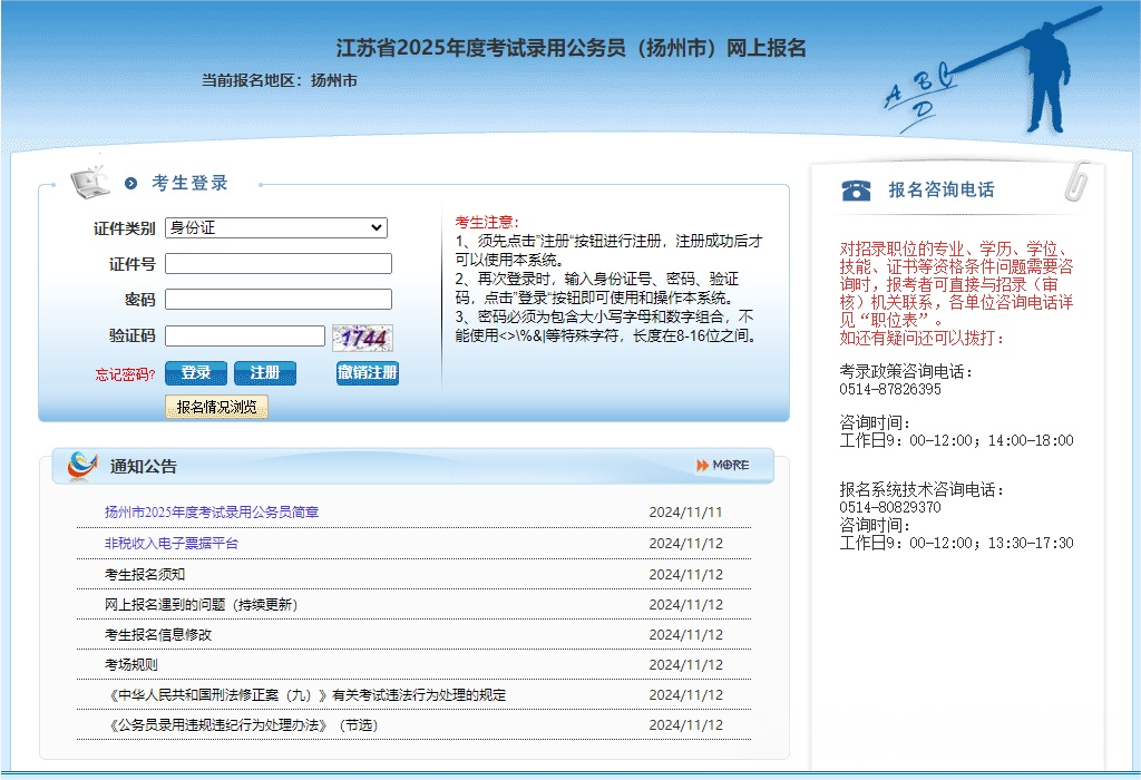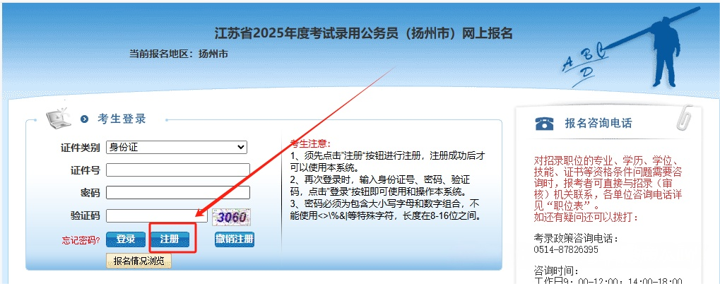 进入到考生注册页面,对应信息填写;注册之后,点击登录: