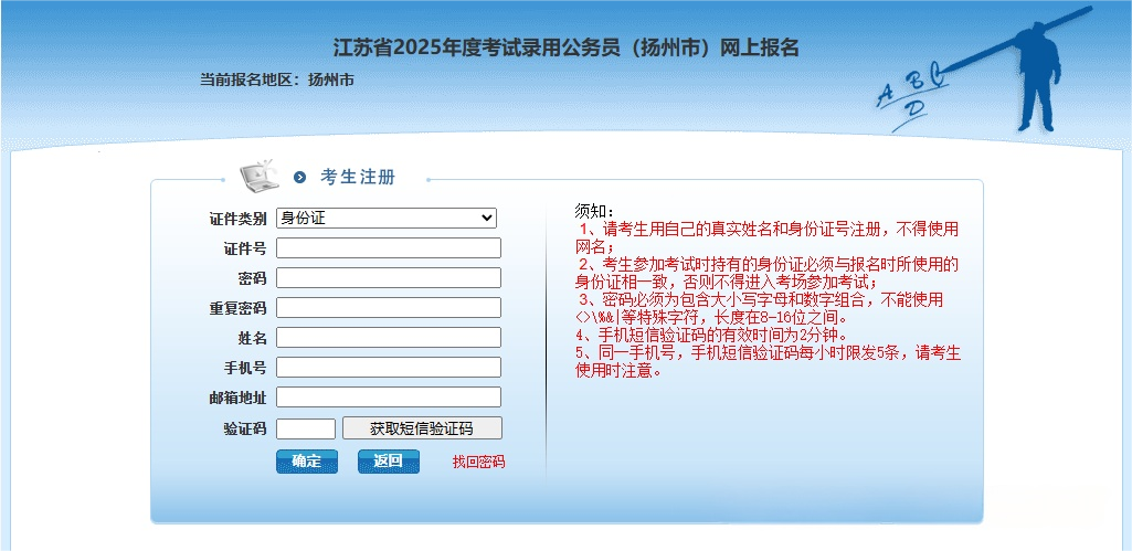 1、请考生用自己的真实姓名和身份证号注册,不得使用网名。