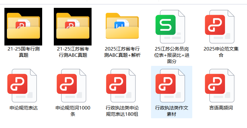 时政+申论规范词、金句、申论范文、人物素材等积累+真题集、行测考前冲刺资料