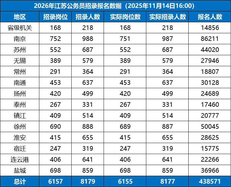 26江苏省考具体报名人数出炉,南京*高报录比2602:1‼️