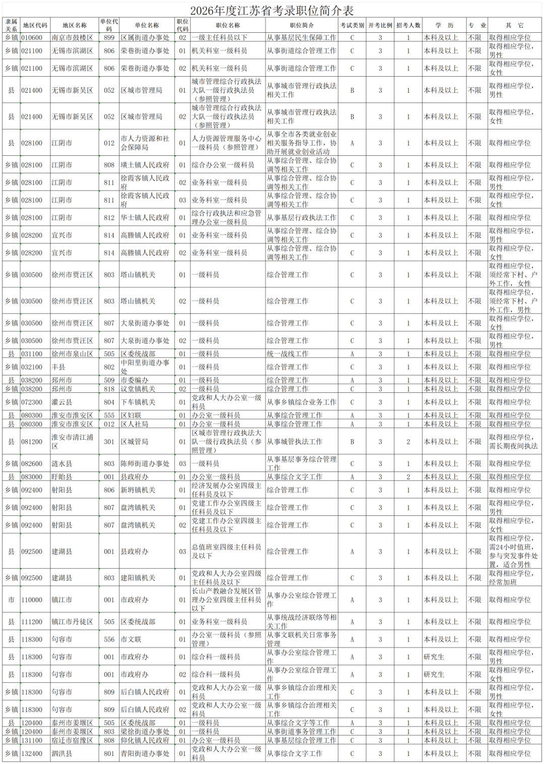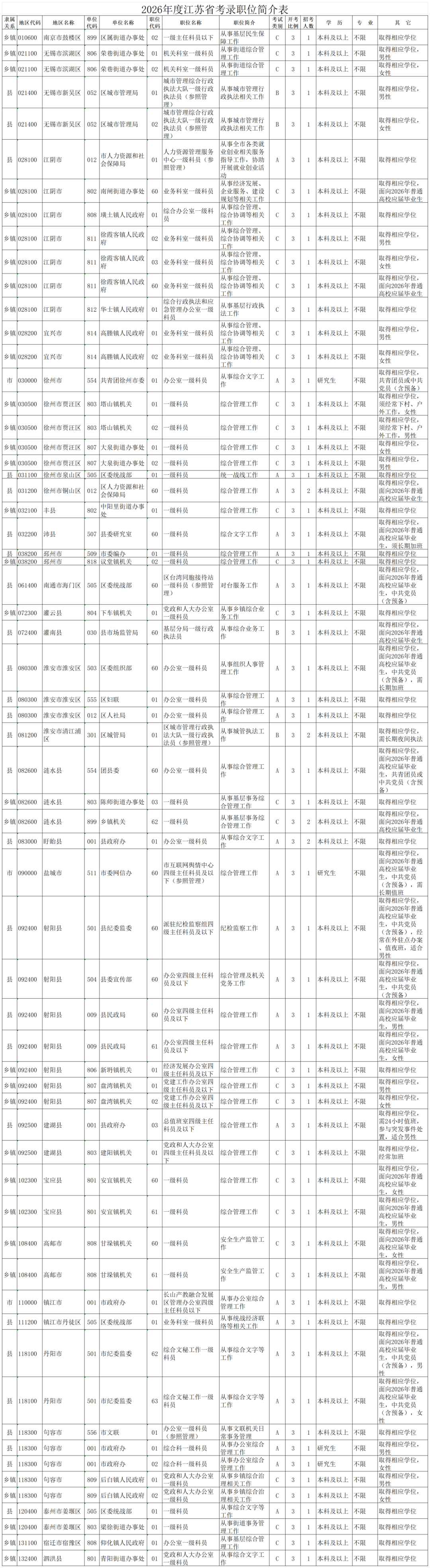 想要26江苏省考岗位表回复【26江苏岗位】