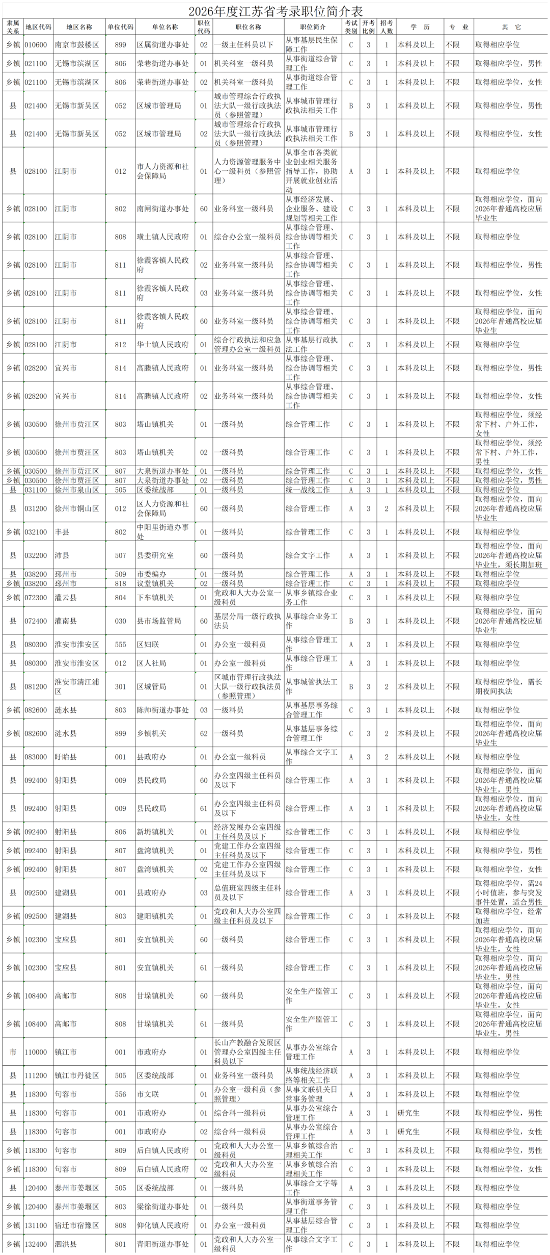 云至公考整理了以下26江苏省考“三不限”岗位供大家参考,希望能对你们有所帮助。