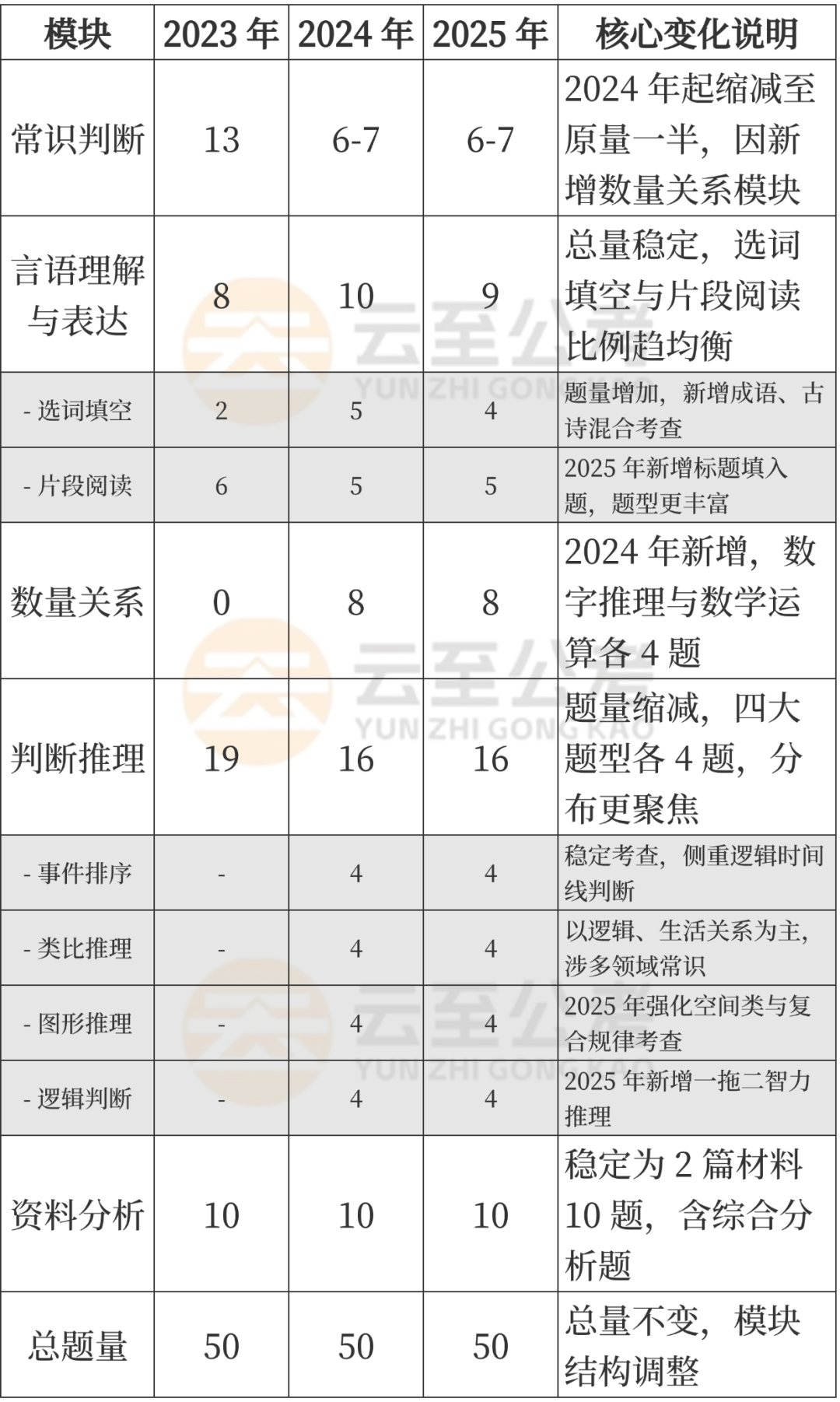 (二)各模块核心考情详情表