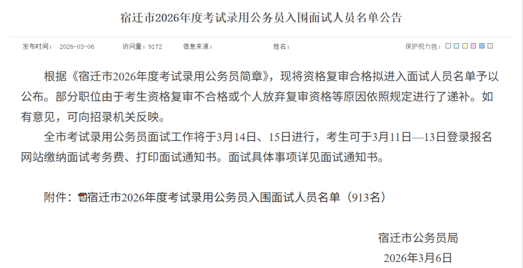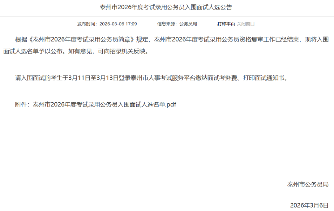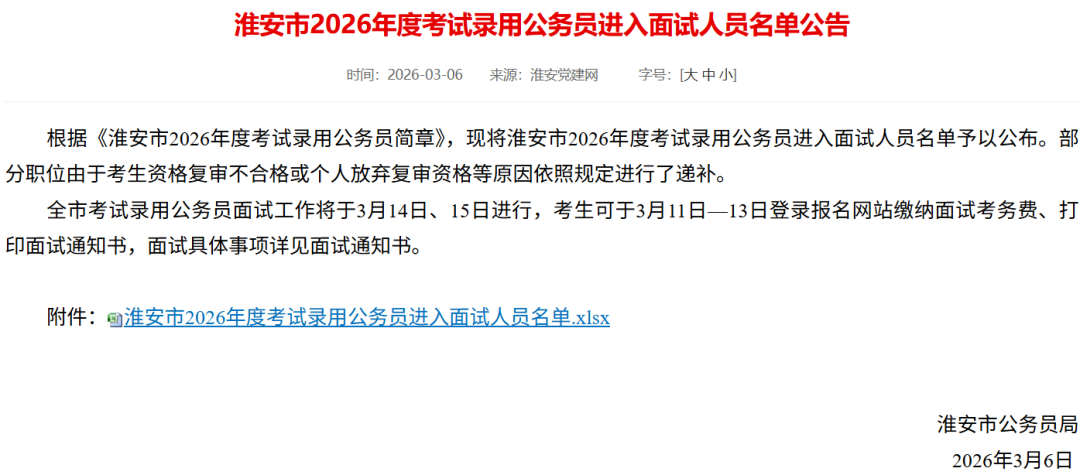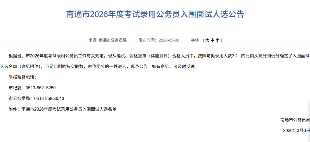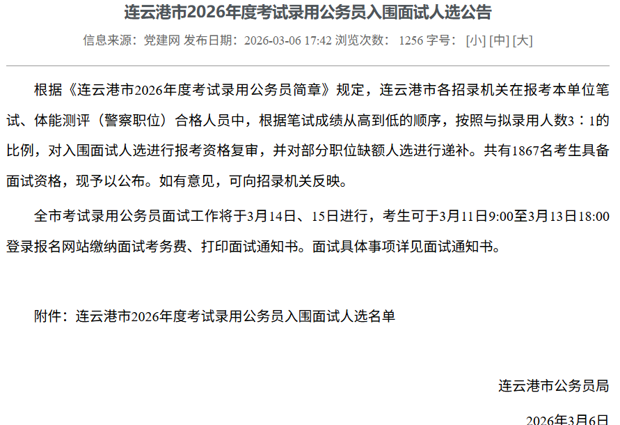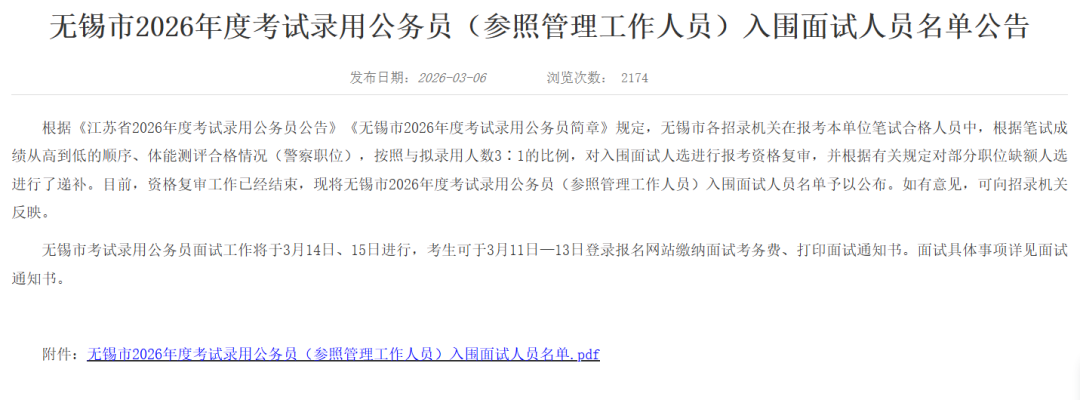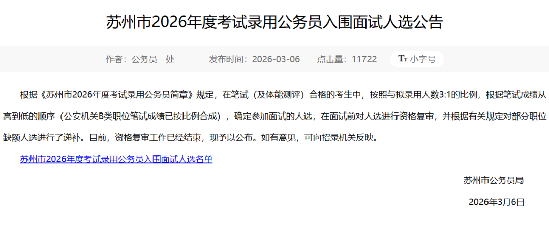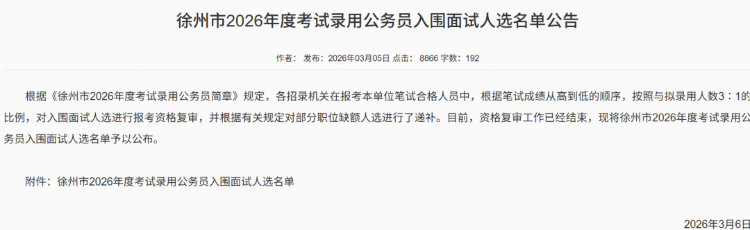 2026江苏省考进面名单分数已出!