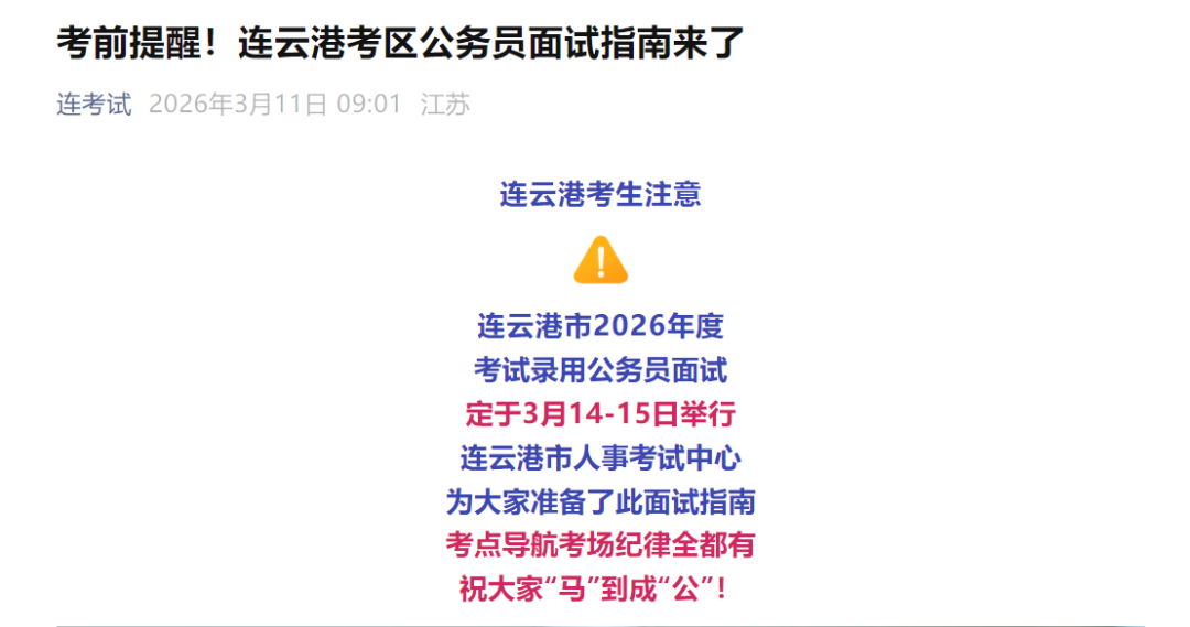 紧急提醒!2026江苏省考面试本周开考(3.14-15),这些细节决定上岸成败!附各地官方通知