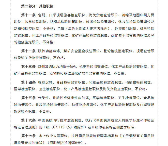 公务员录用体检特殊标准(试行)