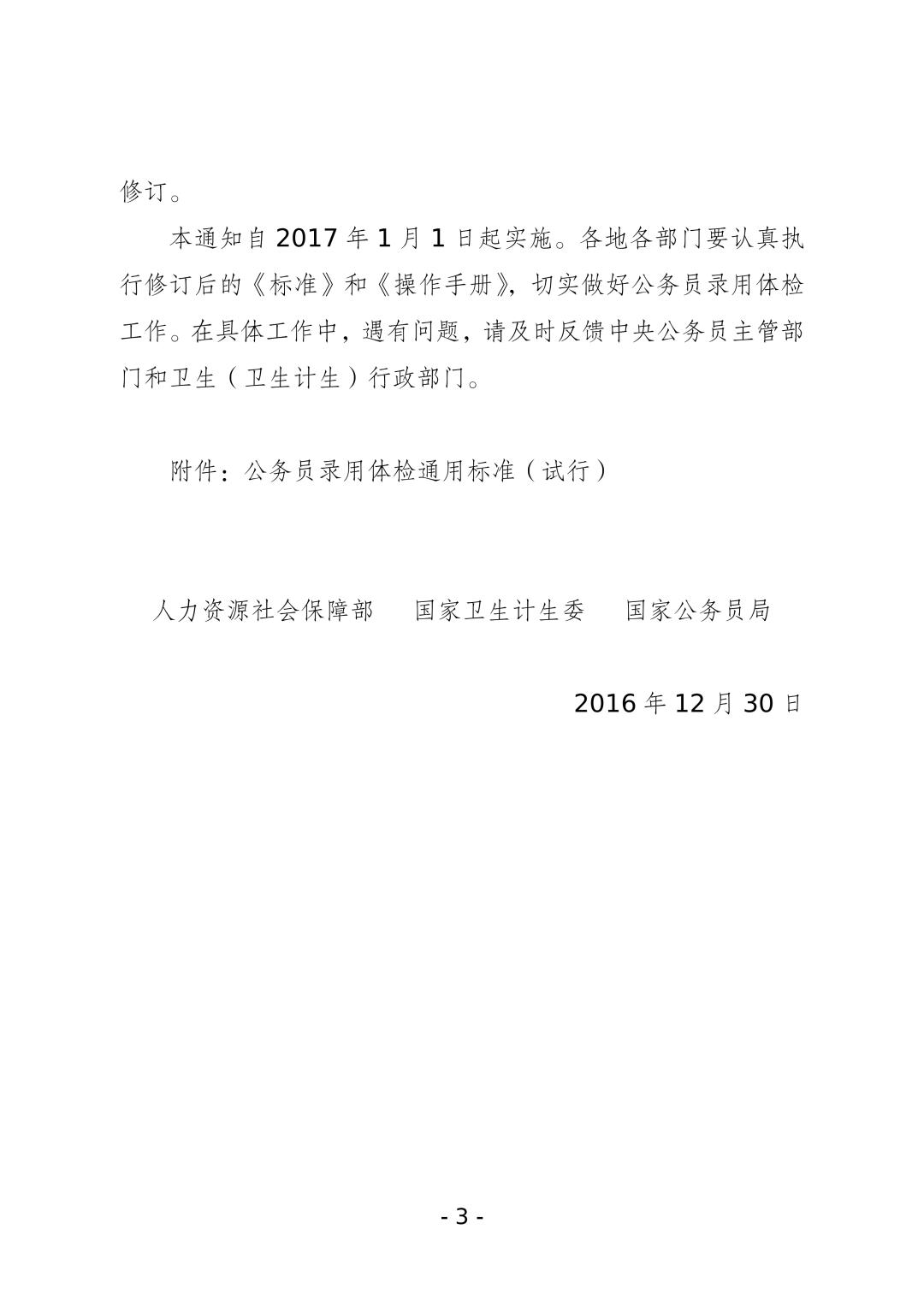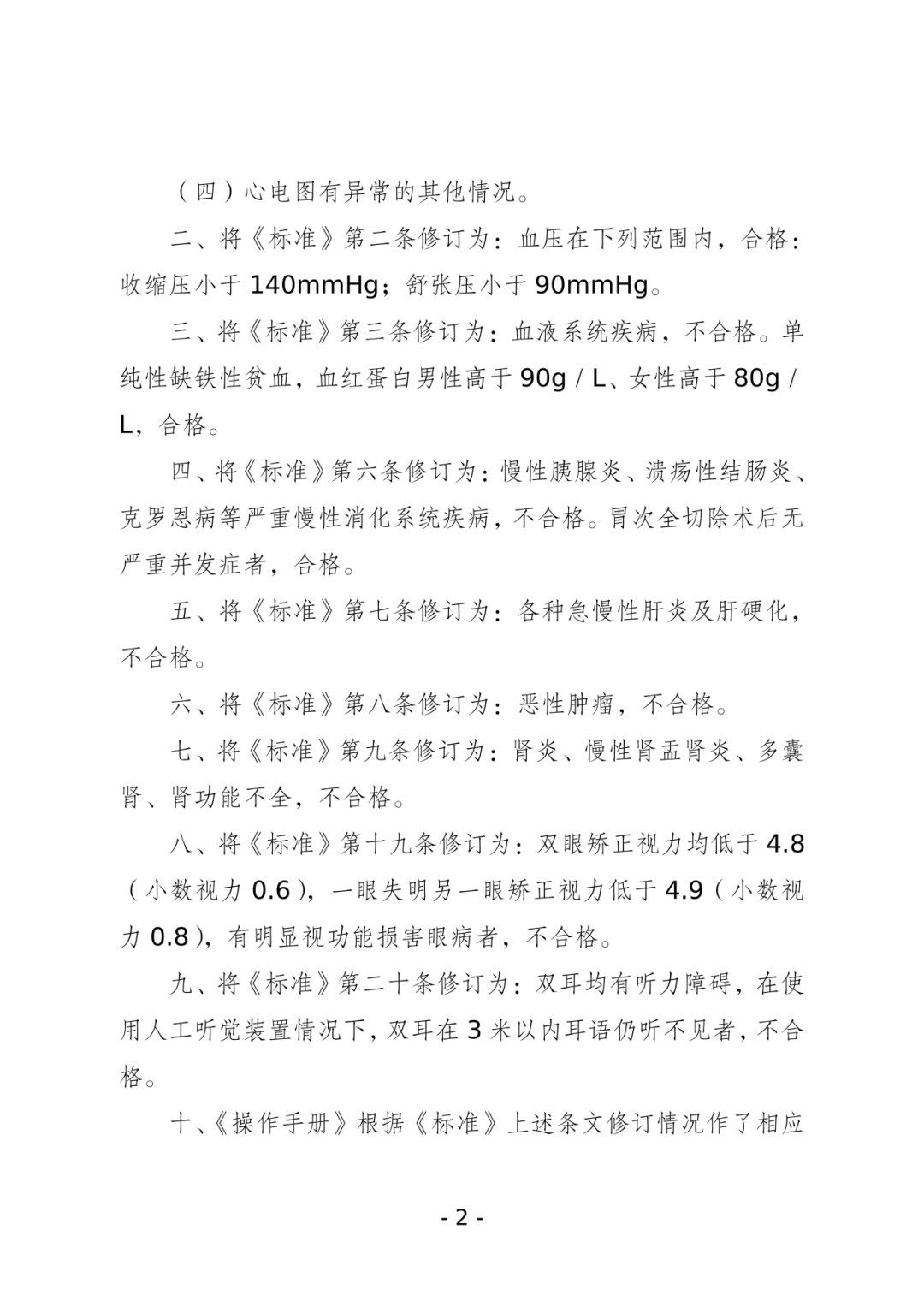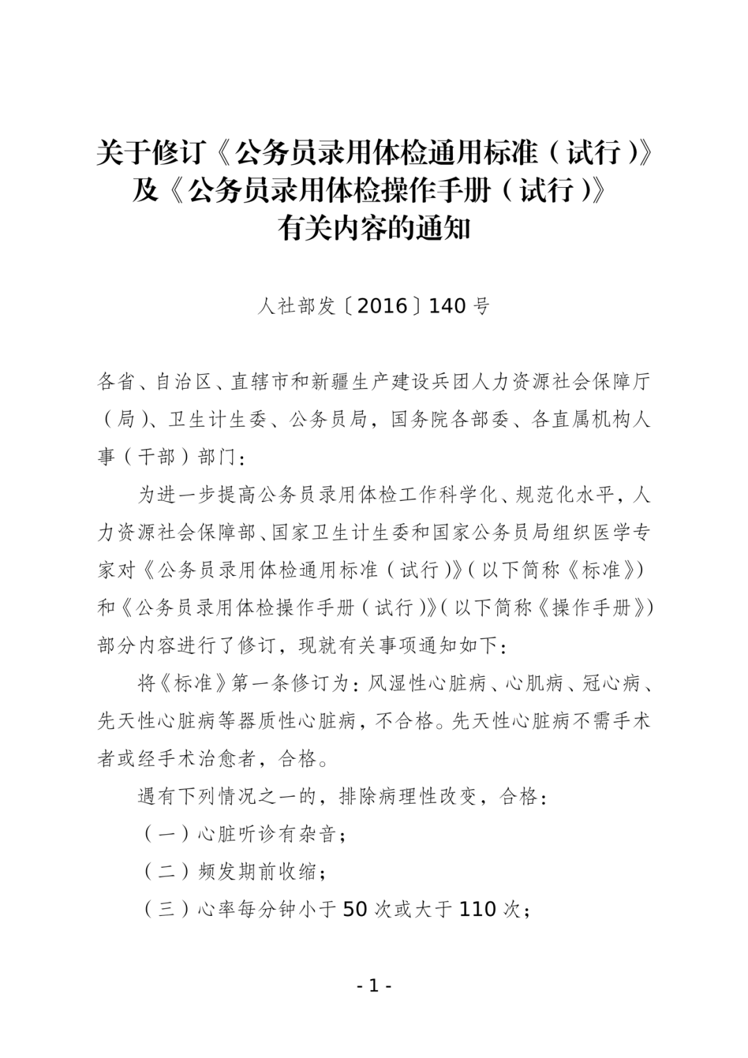 关于修订《公务员录用体检通用标准(试行)》及《公务员录用体检操作手册(试行)》有关内容的通知