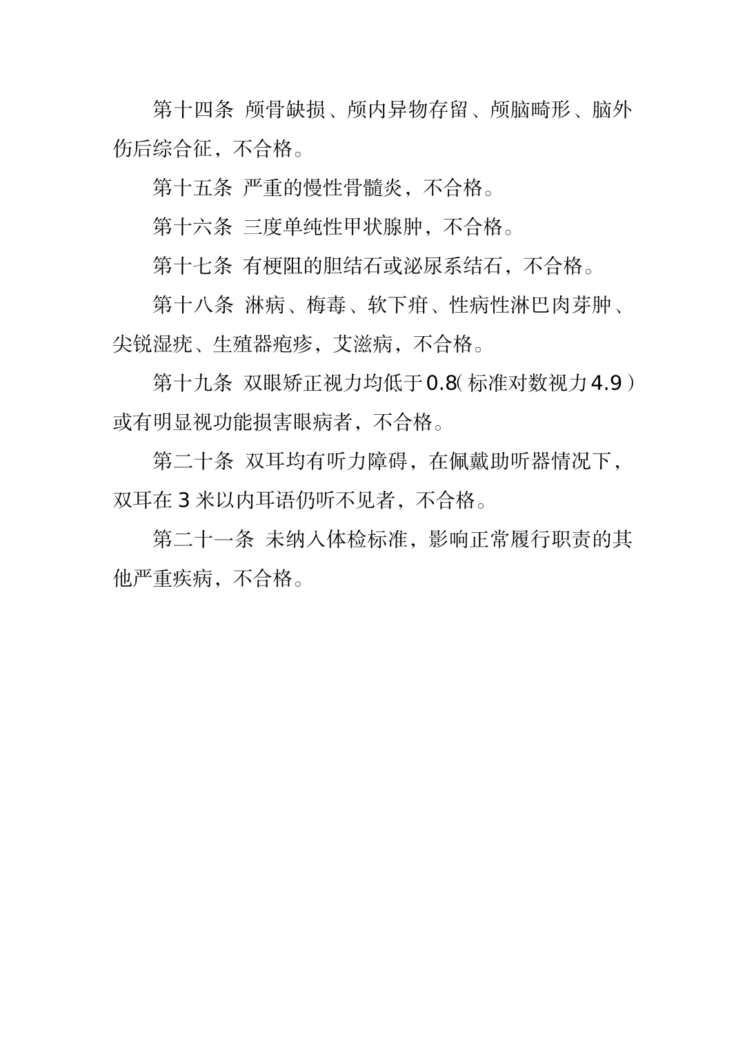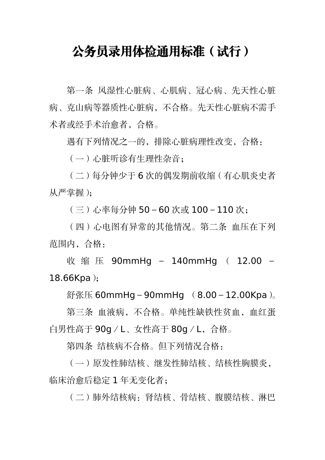 公务员录用体检通用标准(试行)