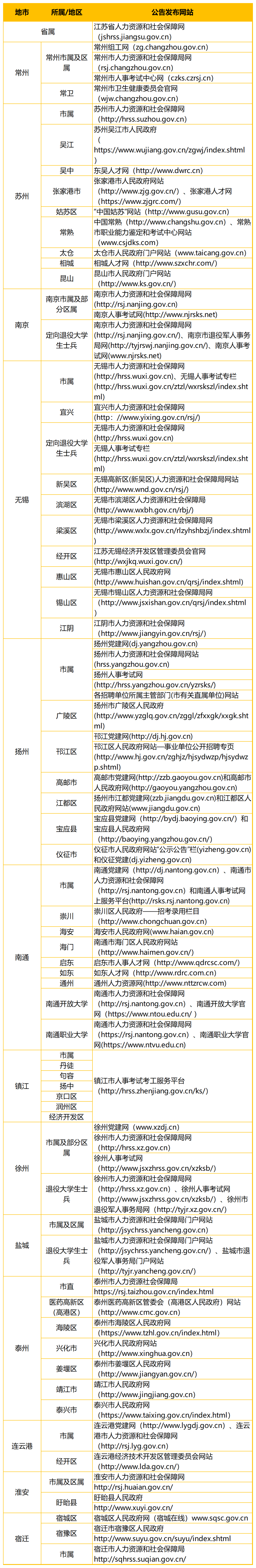 以下是江苏事业单位统考各地区公告发布网址,大家可以自行收藏!