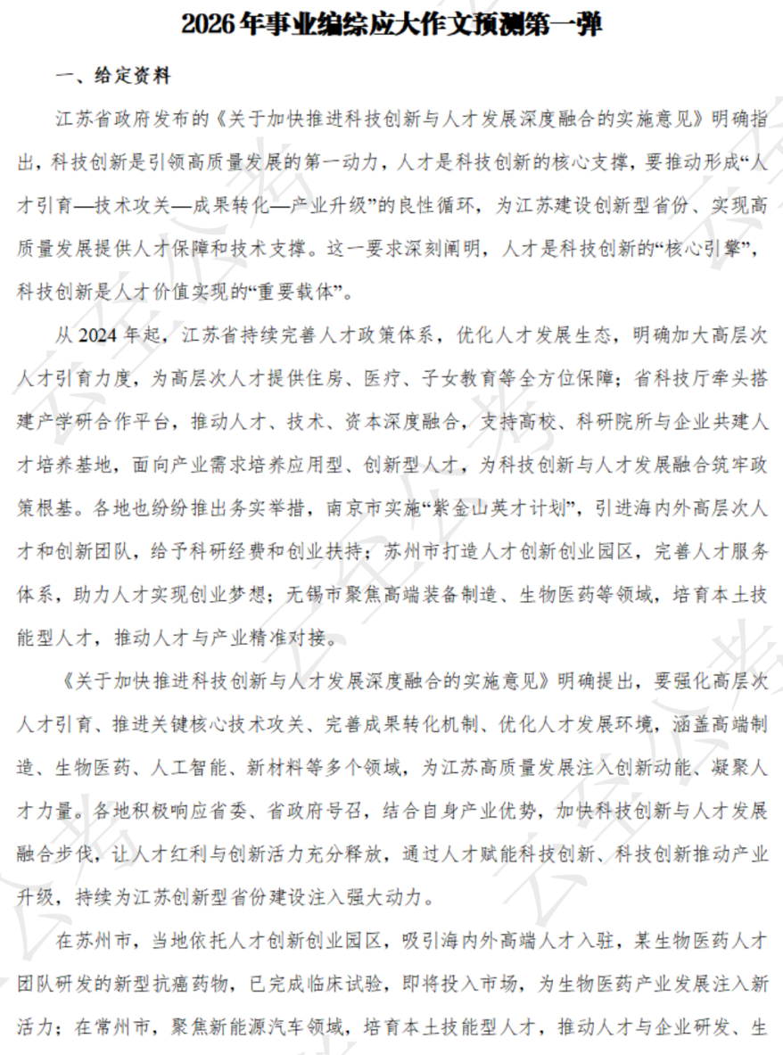2026江苏事业编综应大作文预测第*弹