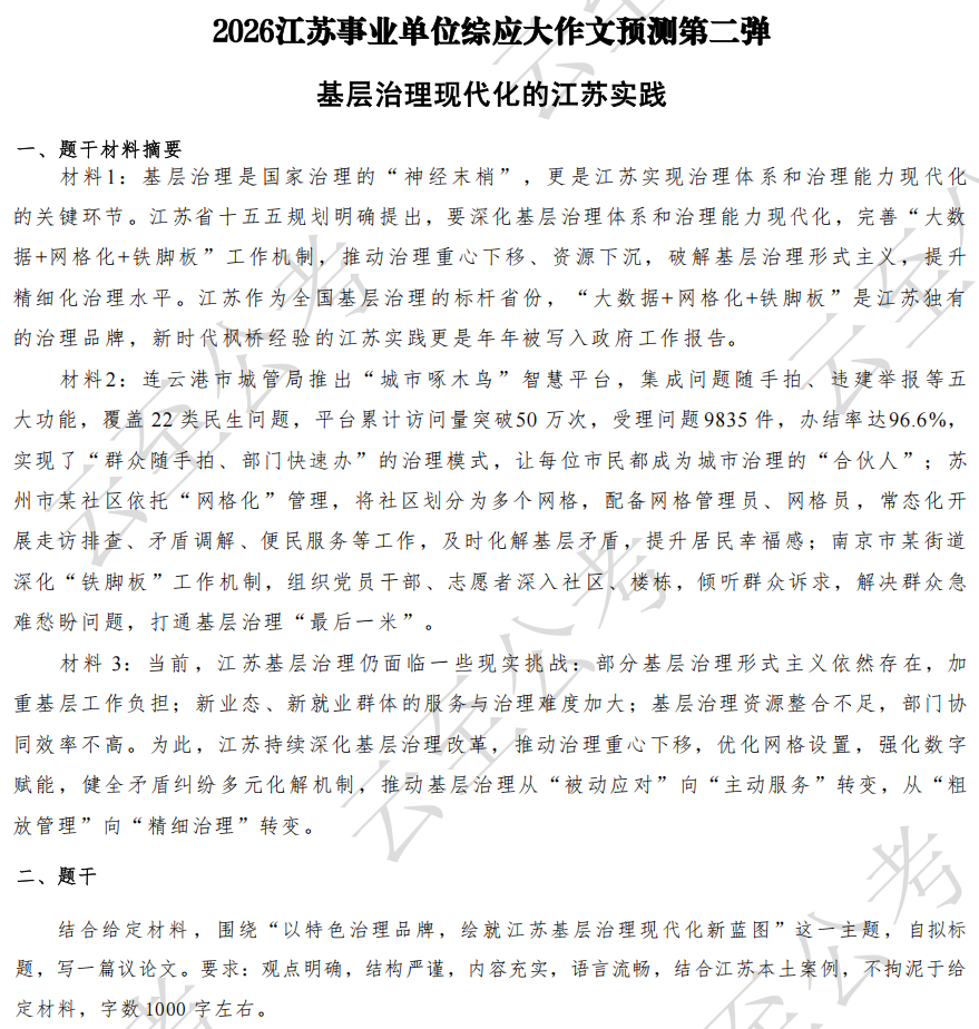 2026江苏事业单位综应大作文预测第二弹