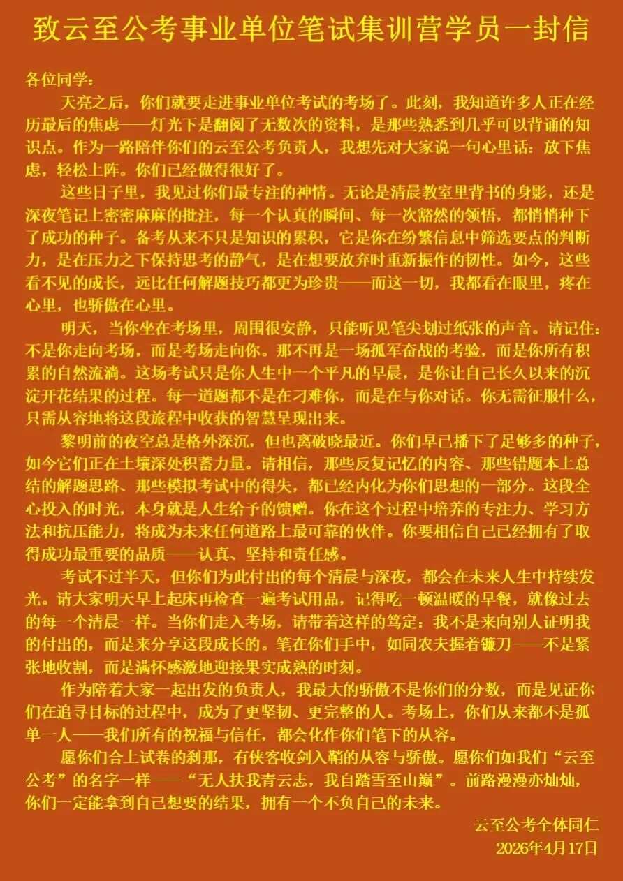 【云至公考】携全体工作人员祝事业编的学子们笔试顺利!一举成功!